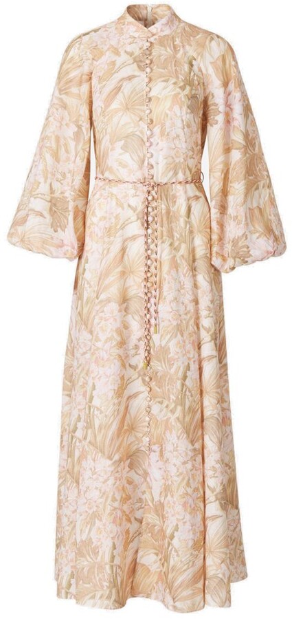 Zimmermann Andie Stand Collar Floral Print Linen Maxi Dress Beige Print Shopstyle
